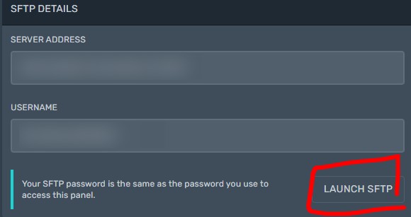 Please note: Your SFTP password is the same as the password you use to access the panel.